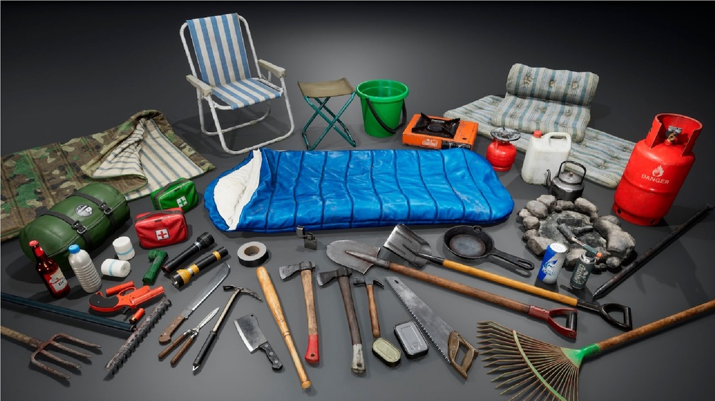 Various items which could be useful when you are far from home and safety. There are more than 45 high quality meshes with very detailed materials. We spent a lot of time to make it look so natural and game-friendly.